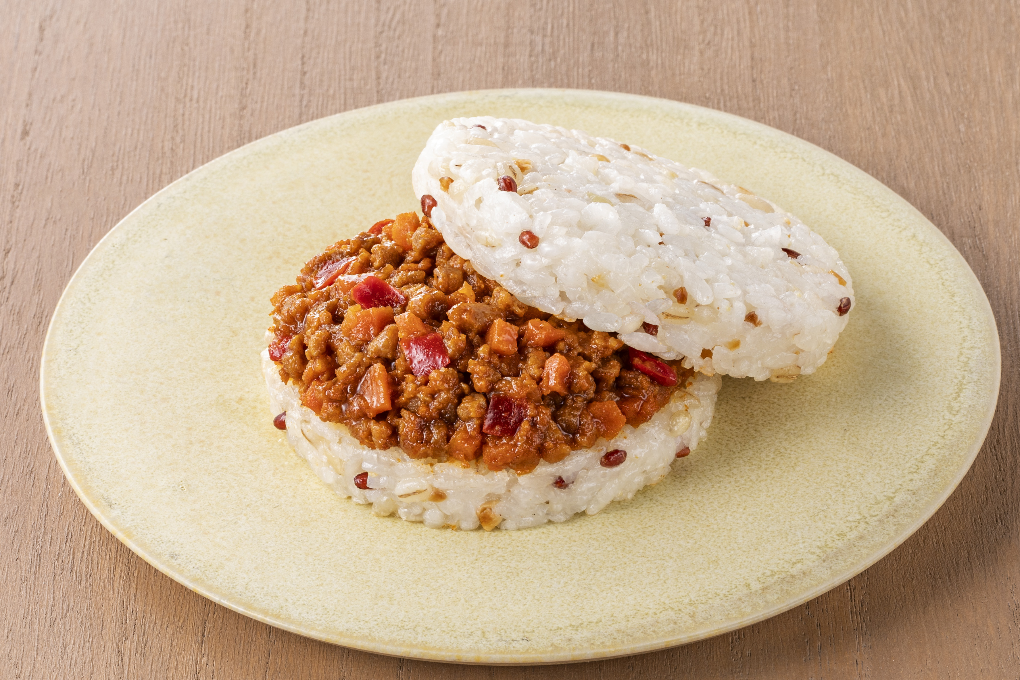 5種の雑穀(もち麦、丸麦、発芽赤米、焙煎挽割大豆、発芽玄米)を配合したライスバンズを開発。
