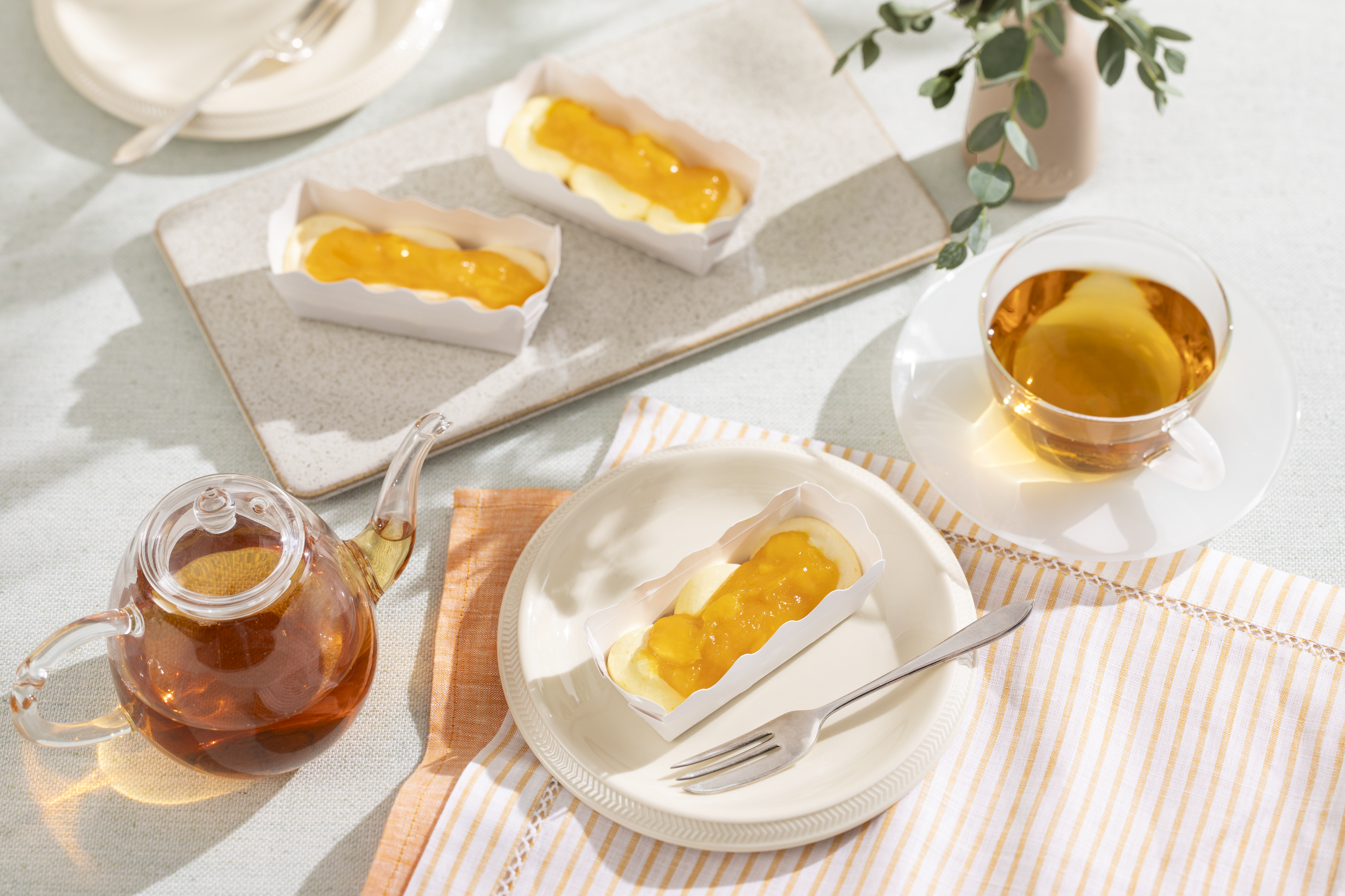 フルーティーでくちどけの良いマンゴー&レモンムースの上に、果肉感のあるマンゴーソースをトッピング。
