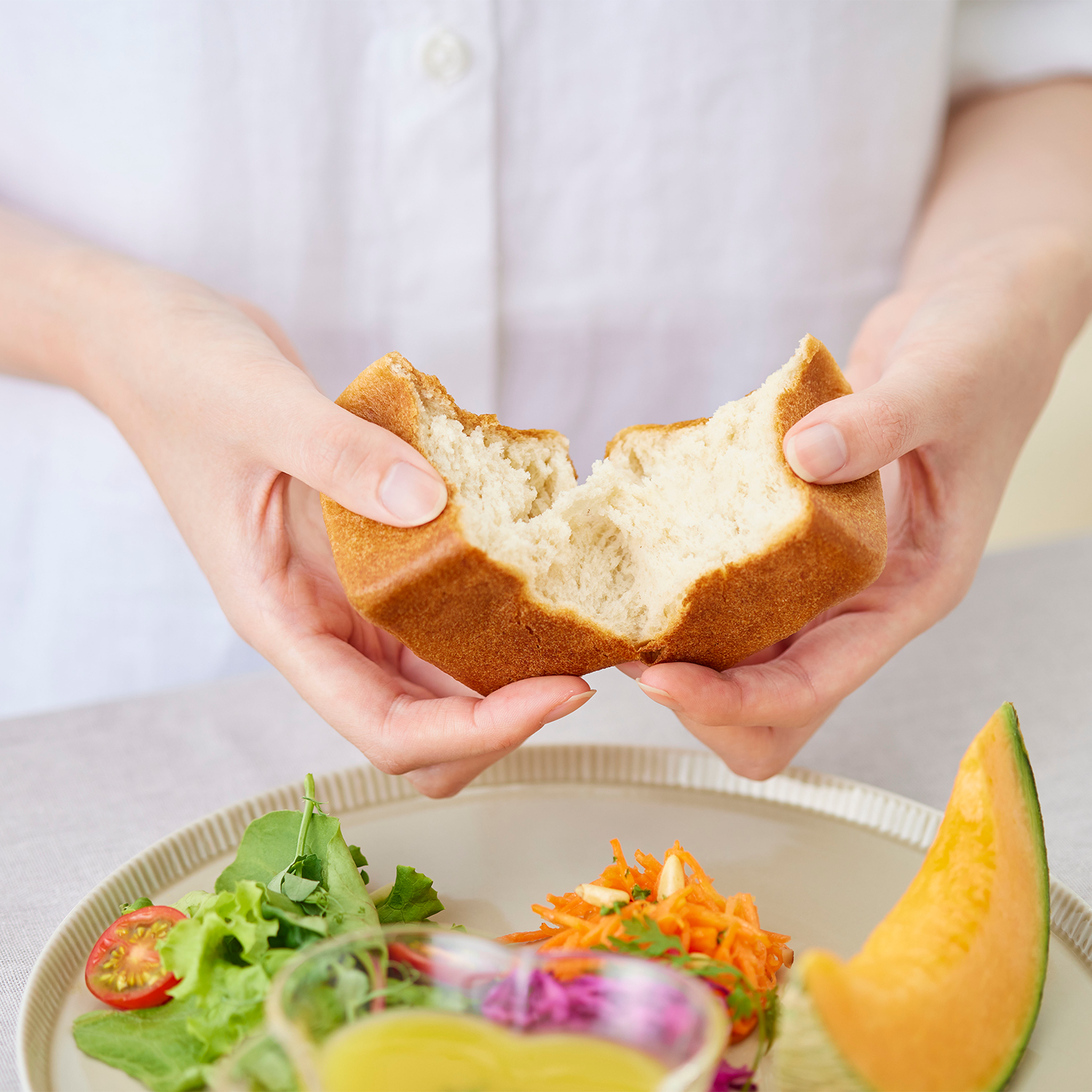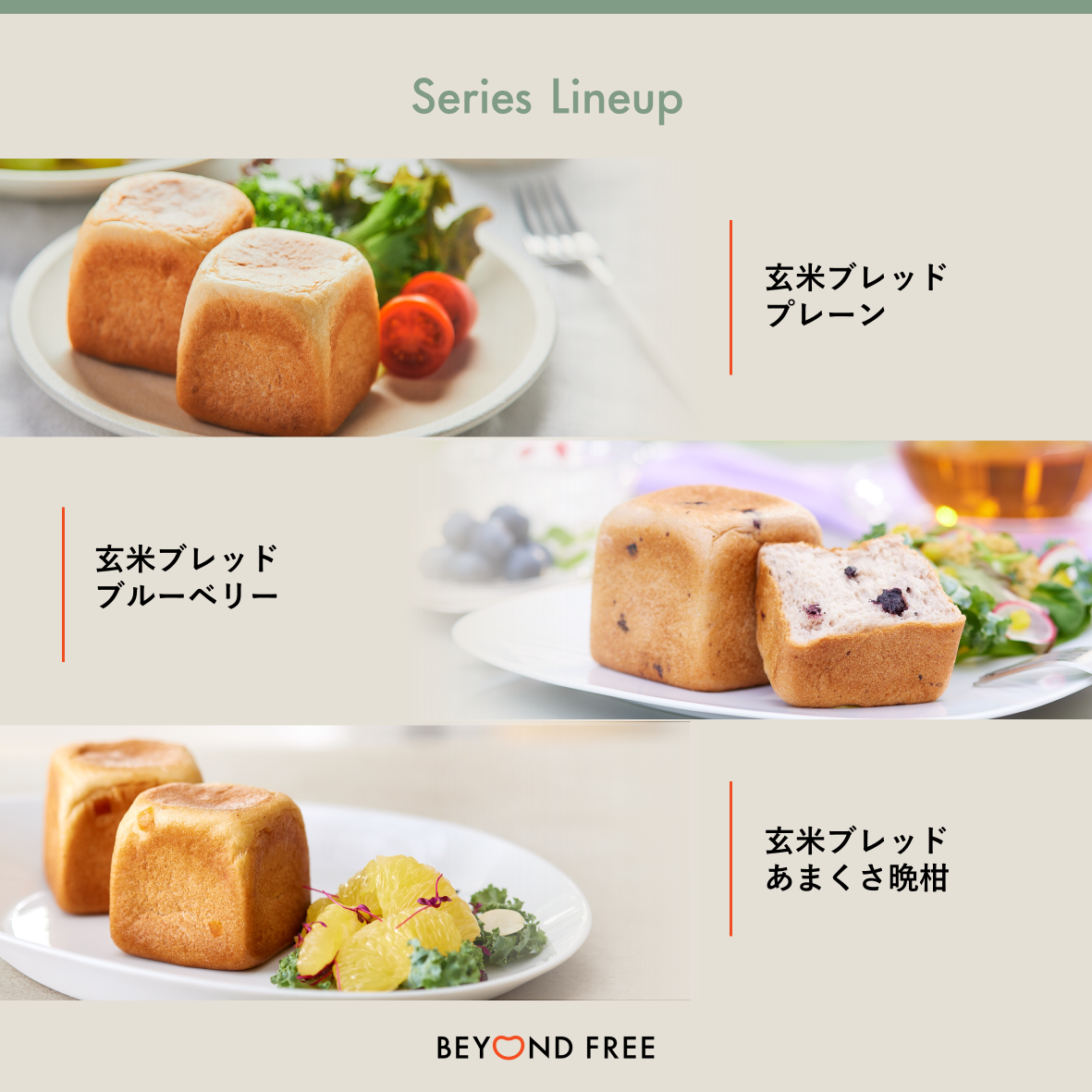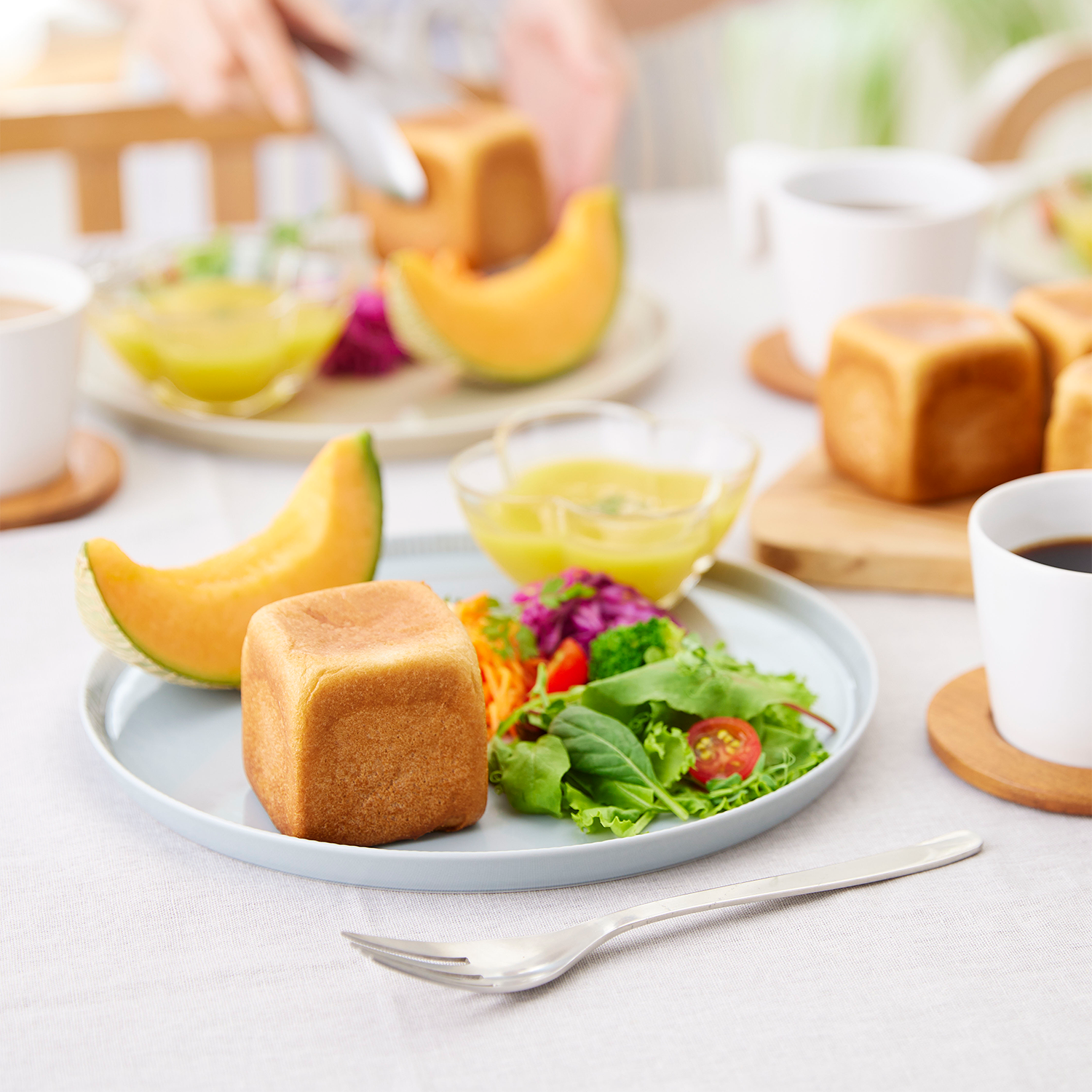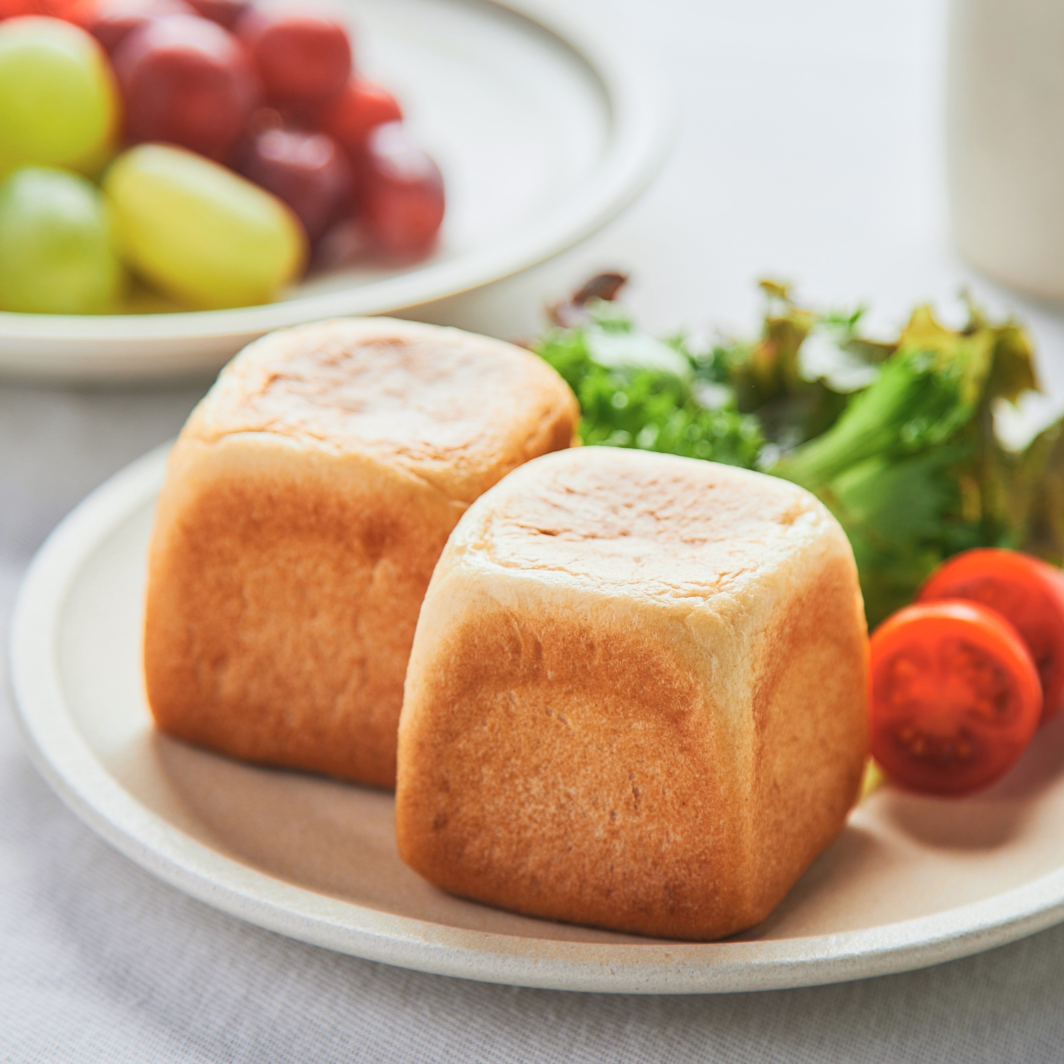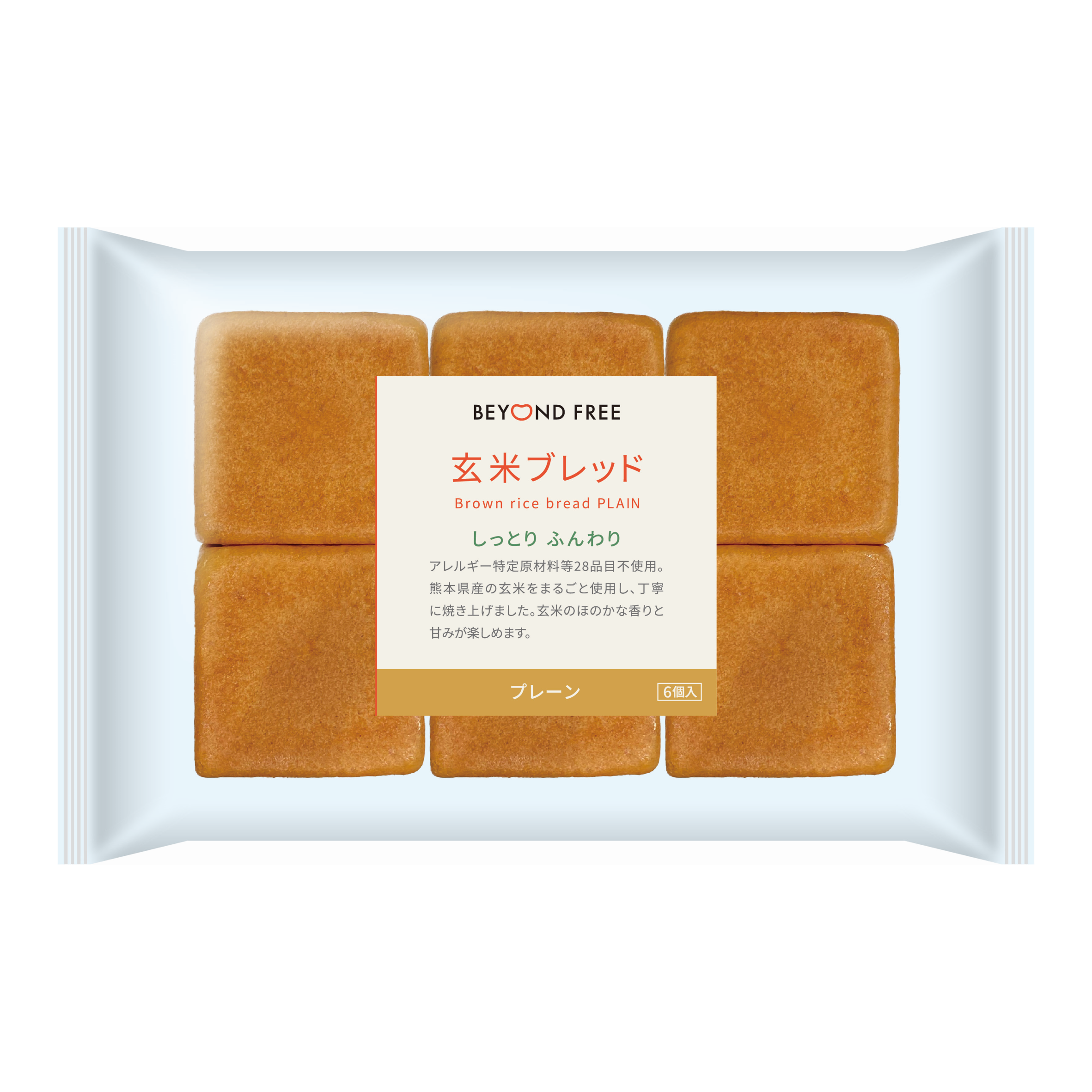 白米と比べて栄養価の高い玄米(熊本県産)を丸ごとペーストにして使用し、丁寧に焼き上げたキューブ形状のパンです。ふんわり、しっとり、もっちりとした食感に加え、素材由来のおいしさそのままに、玄米のほのかな香りと甘みをお楽しみいただけるプレーンタイプです。