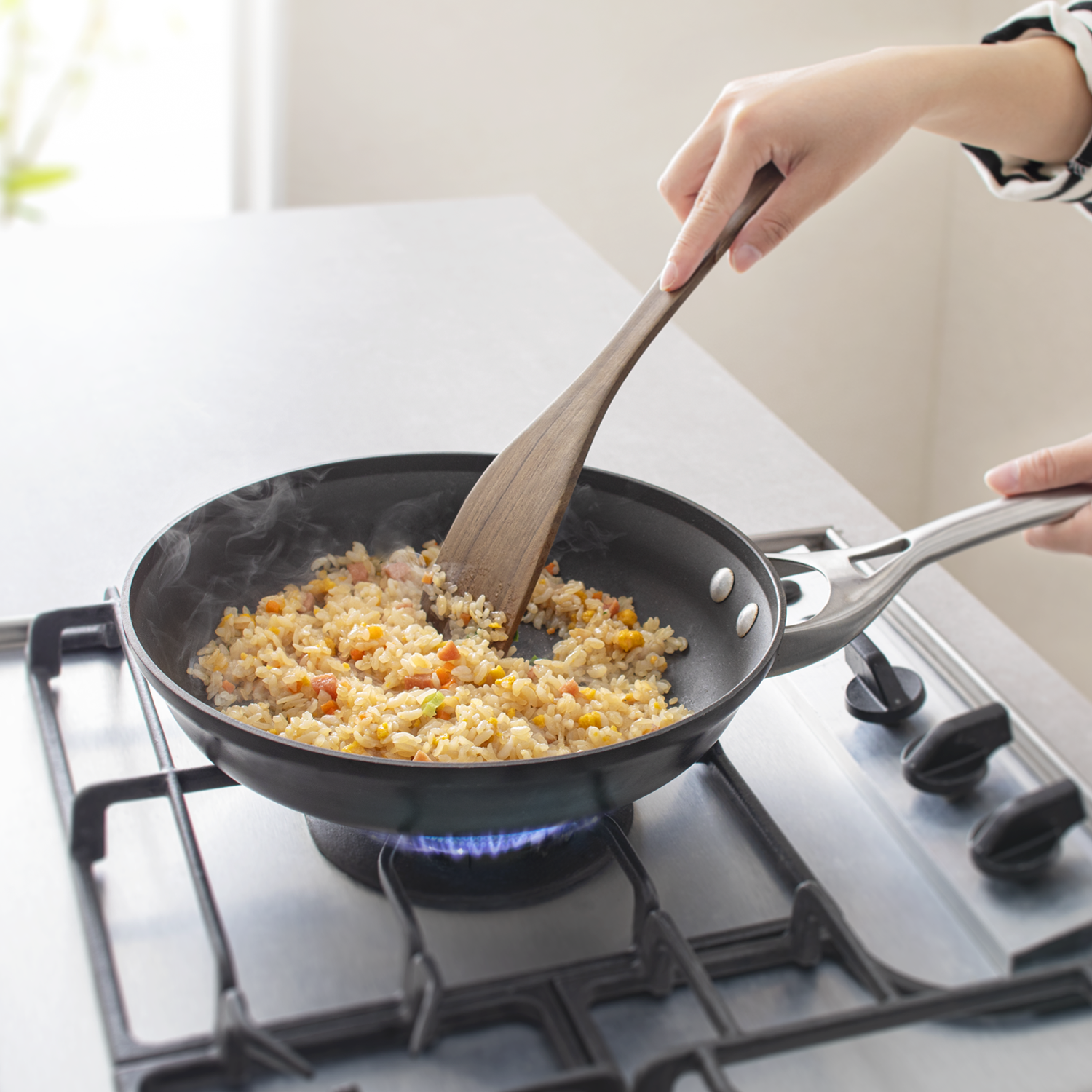 ※鉄製のフライパンを使用する場合は小さじ1杯(約5ml)の油をひいてください。