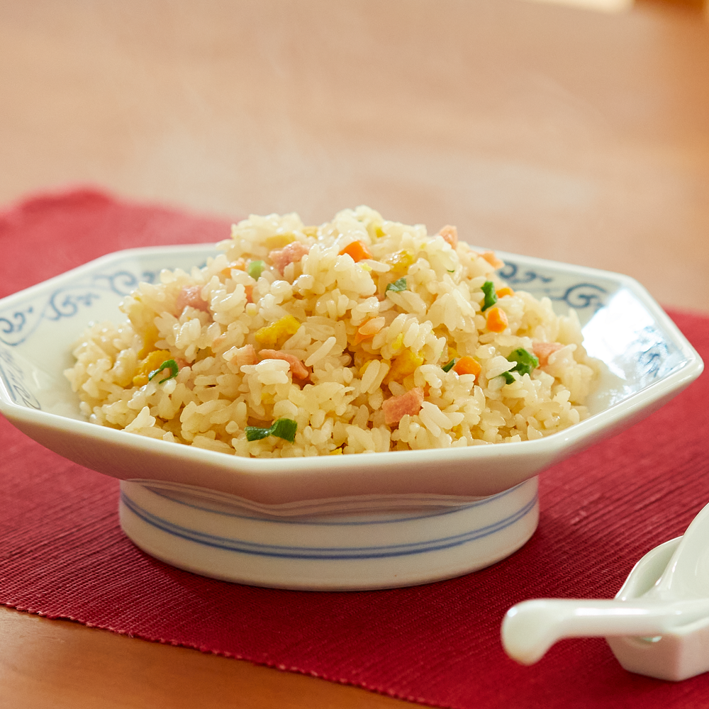 製品中にこんにゃく米を25%配合。カロリーは約25%オフ(※)で仕上げたヘルシーな炒飯です。