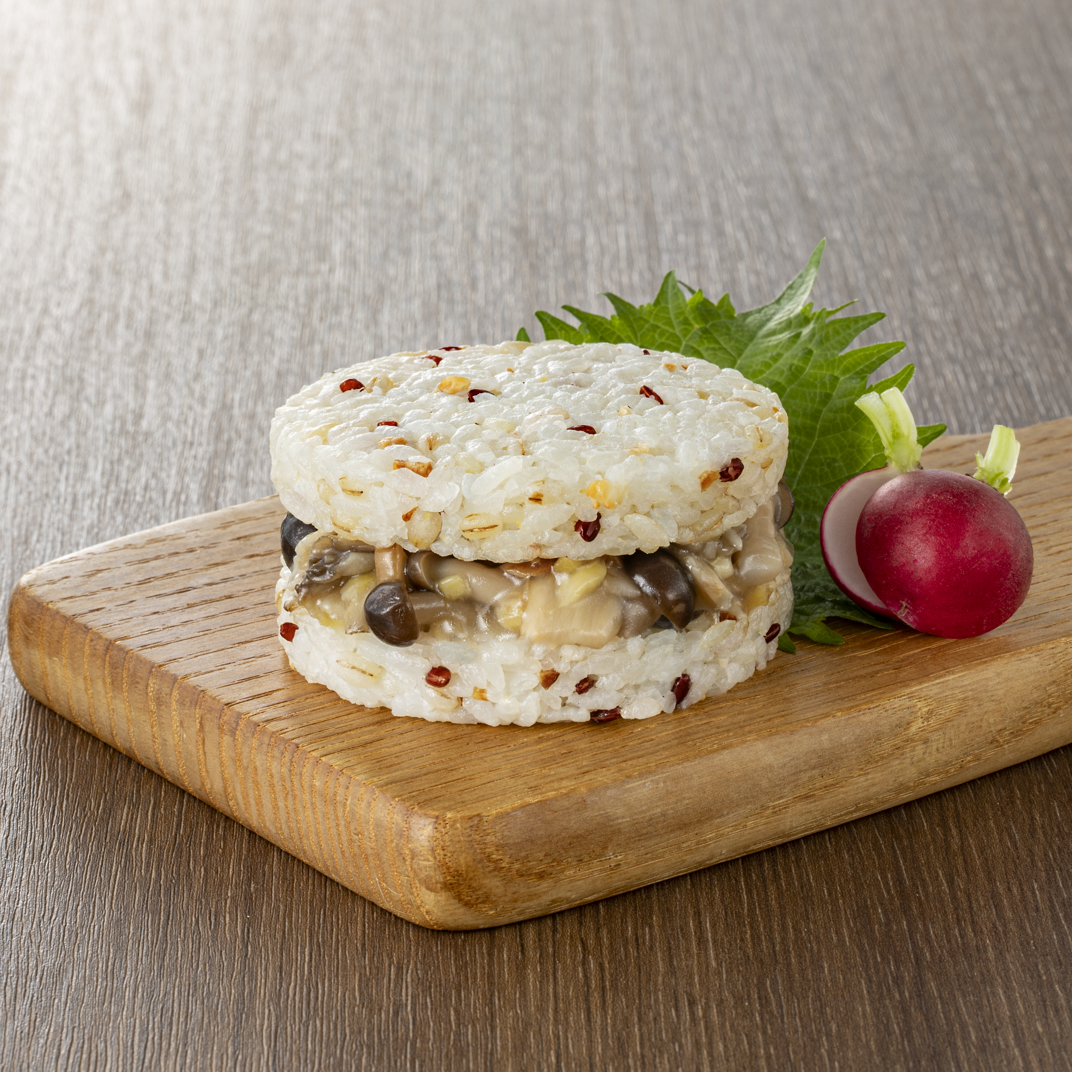 5種の雑穀入りライスバンズで具材を丁寧に挟んだライスバーガーです。