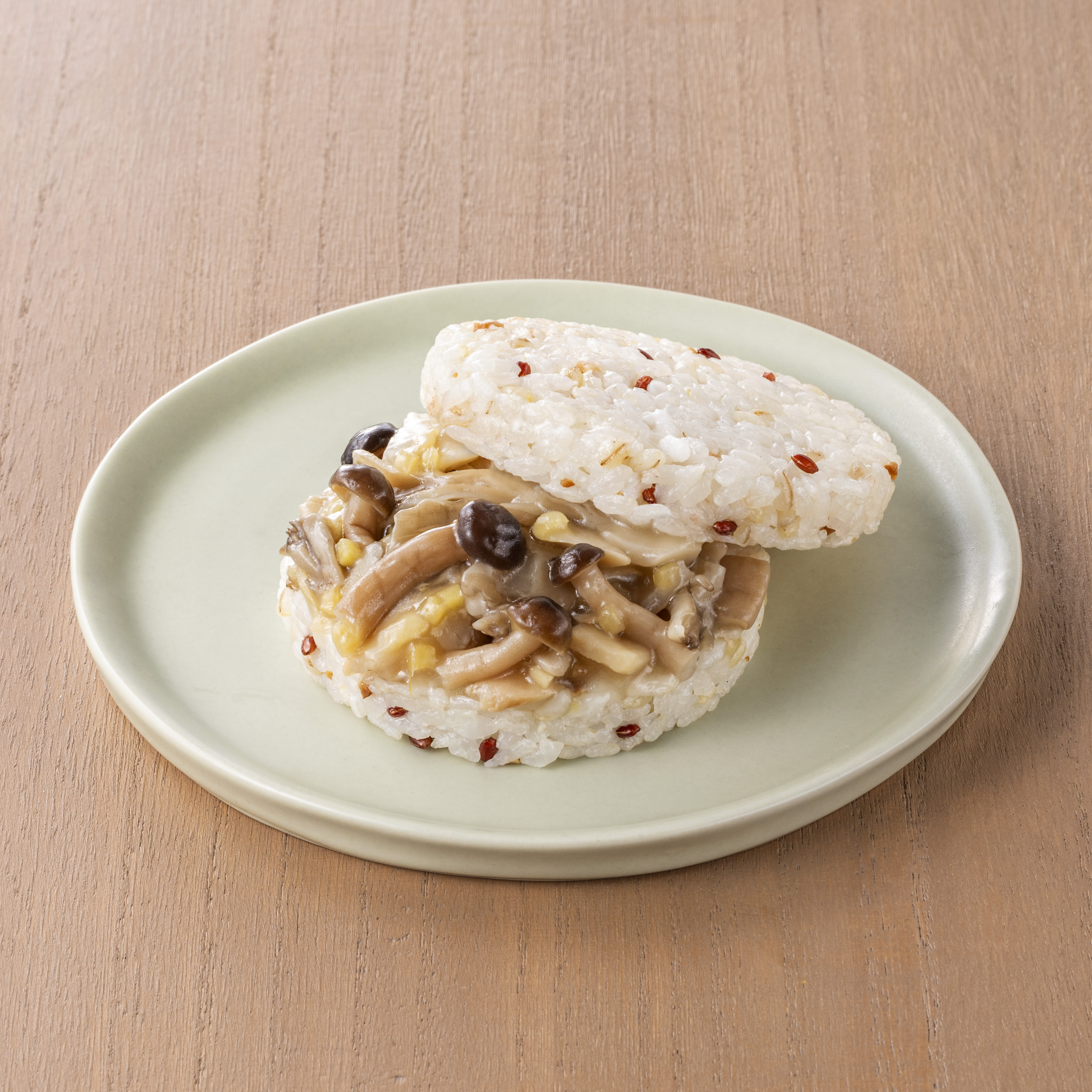 - ライスプレート〔精白米(国内産)、還元難消化性デキストリン、もち麦、丸麦、植物油脂、発芽赤米(国内産)、食塩、焙煎挽割大豆、発芽玄米(国内産)、でん粉、大豆多糖類〕、ぶなしめじ、まいたけ、エリンギ、しょうが、植物油脂、砂糖、しょうゆ、香味調味料、みりん、食塩、還元難消化性デキストリン/増粘剤(加工デンプン、キサンタンガム)、加工デンプン、トレハロース、酸味料、(一部に小麦・大豆を含む)