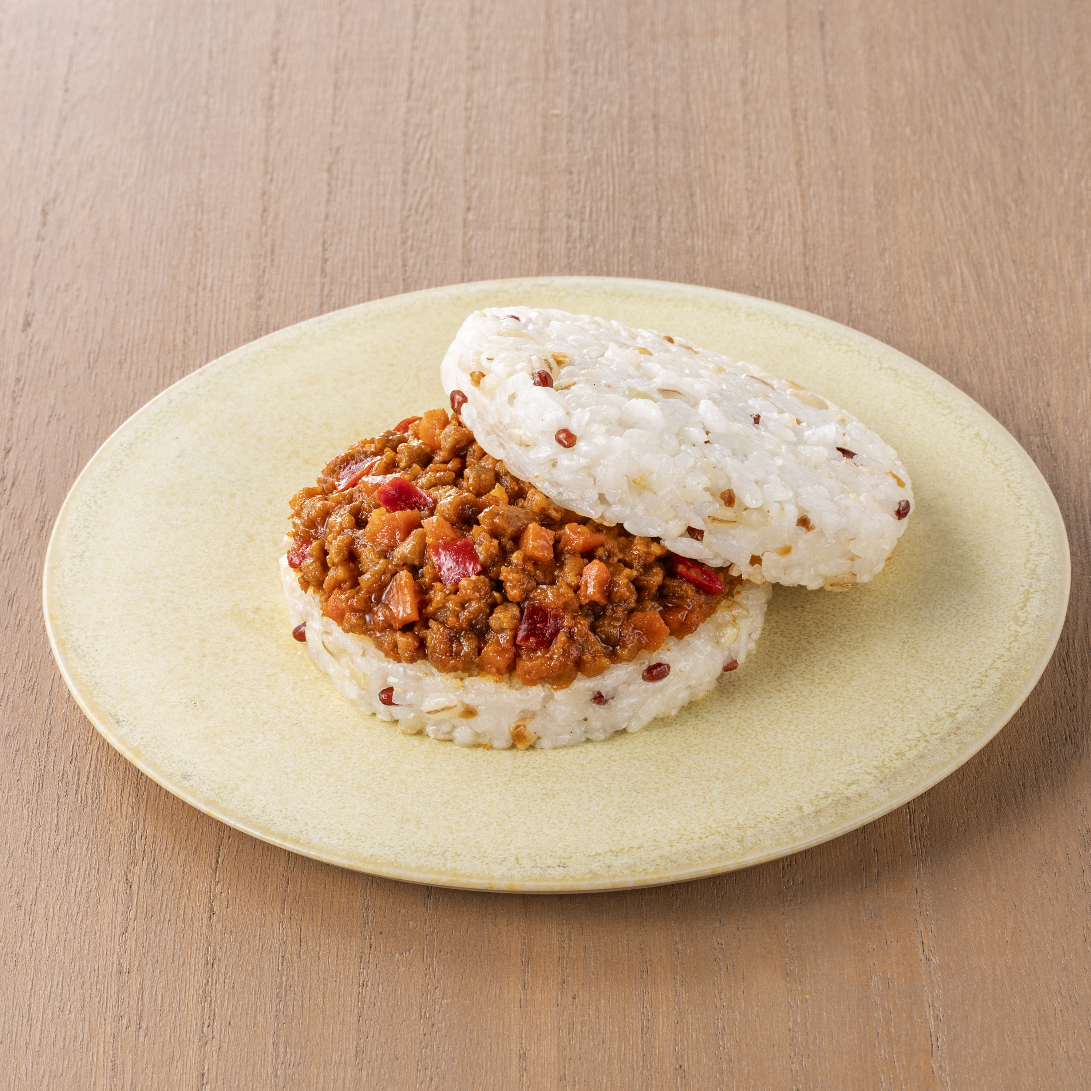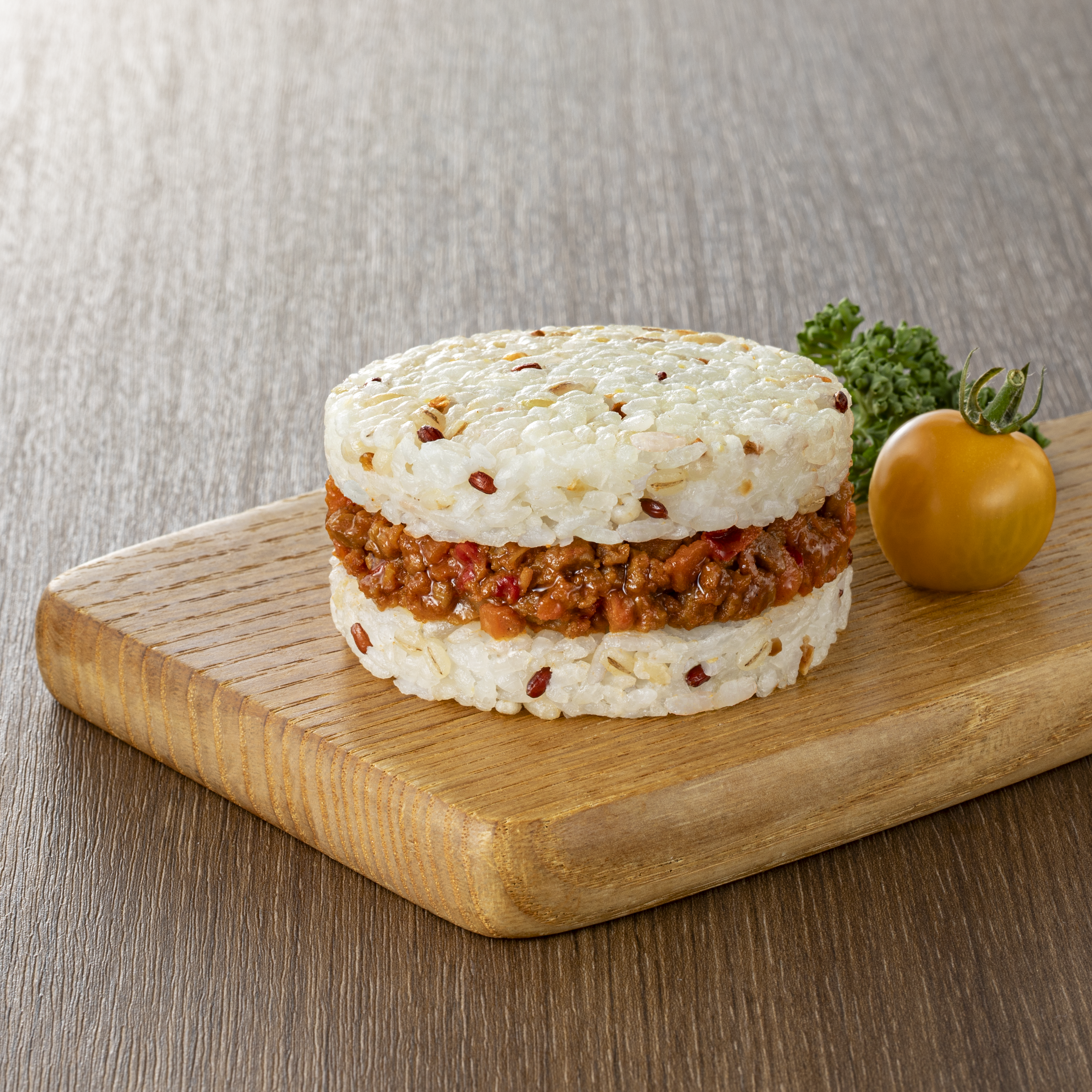 5種の雑穀入りライスバンズで具材を丁寧に挟んだライスバーガーです。
