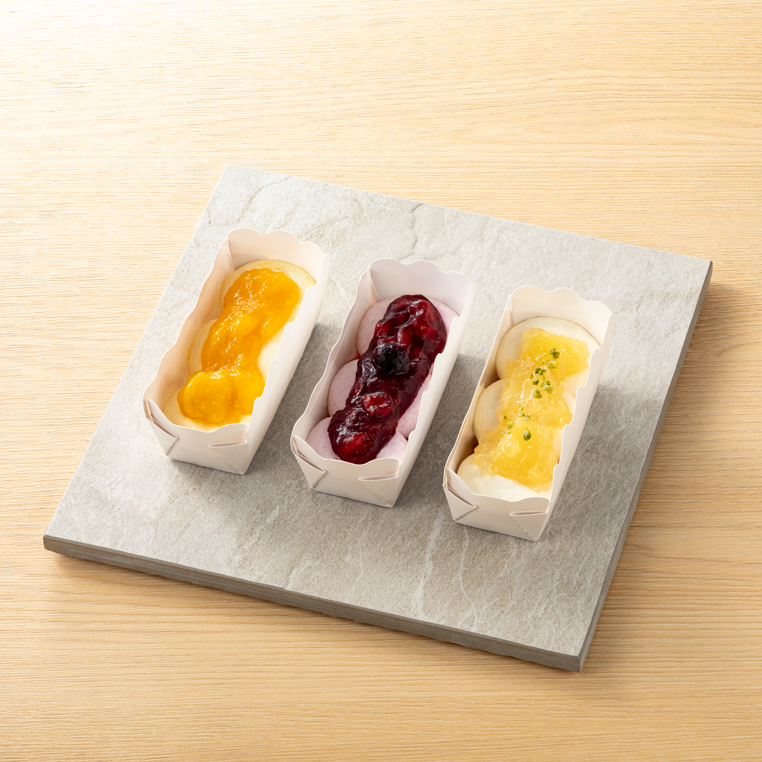 フルーティーなムース・果肉感のあるソース・クラッシュ寒天ゼリーが織りなす、食感も楽しい3層構造が贅沢なスイーツです。...