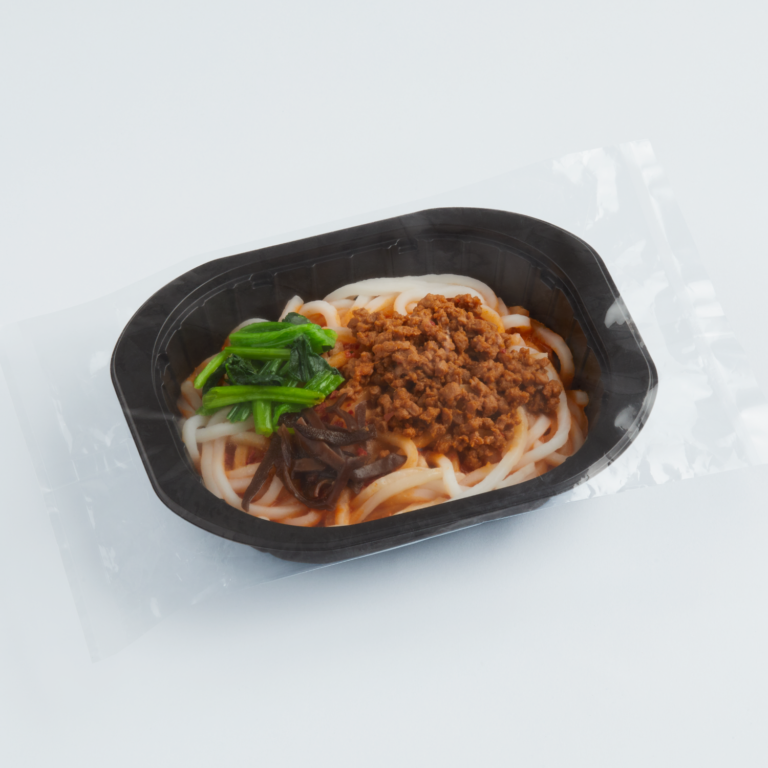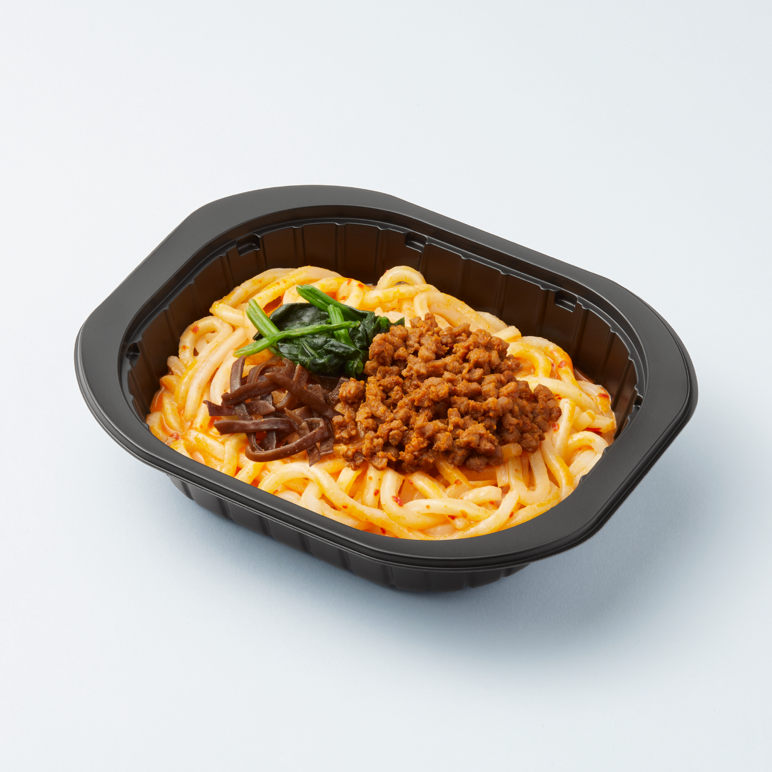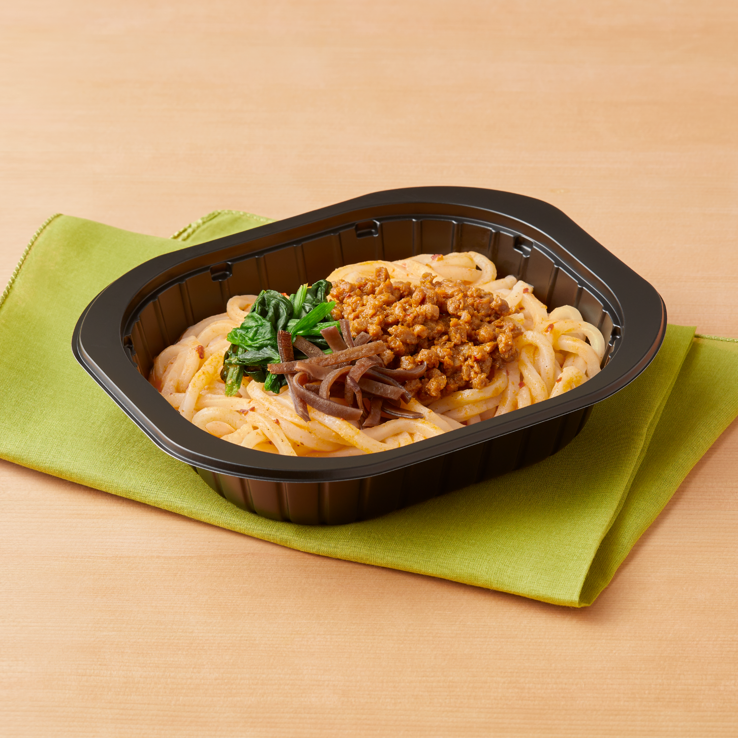 - 米粉(国内製造)、粒状植物性たん白、ほうれんそう、ねりごま、芝麻醤、食塩、植物油脂、砂糖、きくらげ、甜麺醤、しょうゆ、香味油、おろししょうが、おろしにんにく、香辛料、豆板醤、粉末油脂、発酵調味料、酵母エキス/加工デンプン、増粘剤(増粘多糖類、アルギン酸Na、アルギン酸エステル、加工デンプン)、調味料(アミノ酸)、乳化剤、着色料(カロチノイド、カラメル、ココア)、酸味料、香辛料抽出物、(一部に小麦・ごま・大豆を含む)